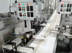 制作麻花的原始材料從進(jìn)入生產(chǎn)現(xiàn)場開始,經(jīng)過和面機(jī)-四頭液壓麻花機(jī)-油炸生產(chǎn)線-包裝機(jī)-系列的連續(xù)流水化生產(chǎn)線。生產(chǎn)線由工件傳送系統(tǒng)和控制系統(tǒng)組成,組成連續(xù)、高效...